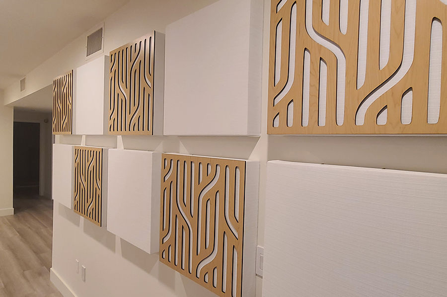 The core material used in our panels is Roxul, which is a highly effective sound absorber. We use MDF to build our panels, which not only protects the edges and corners from dents and damage but also provides additional sound absorption.